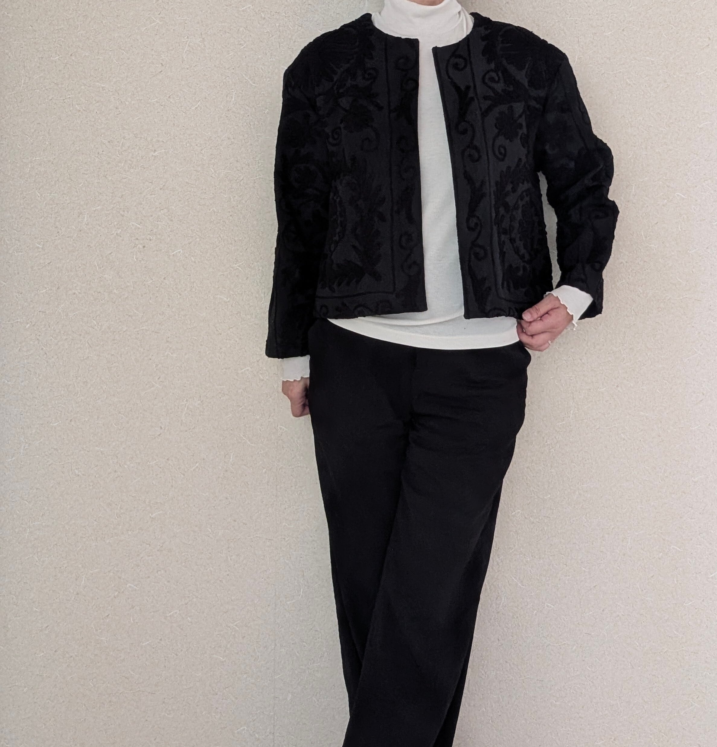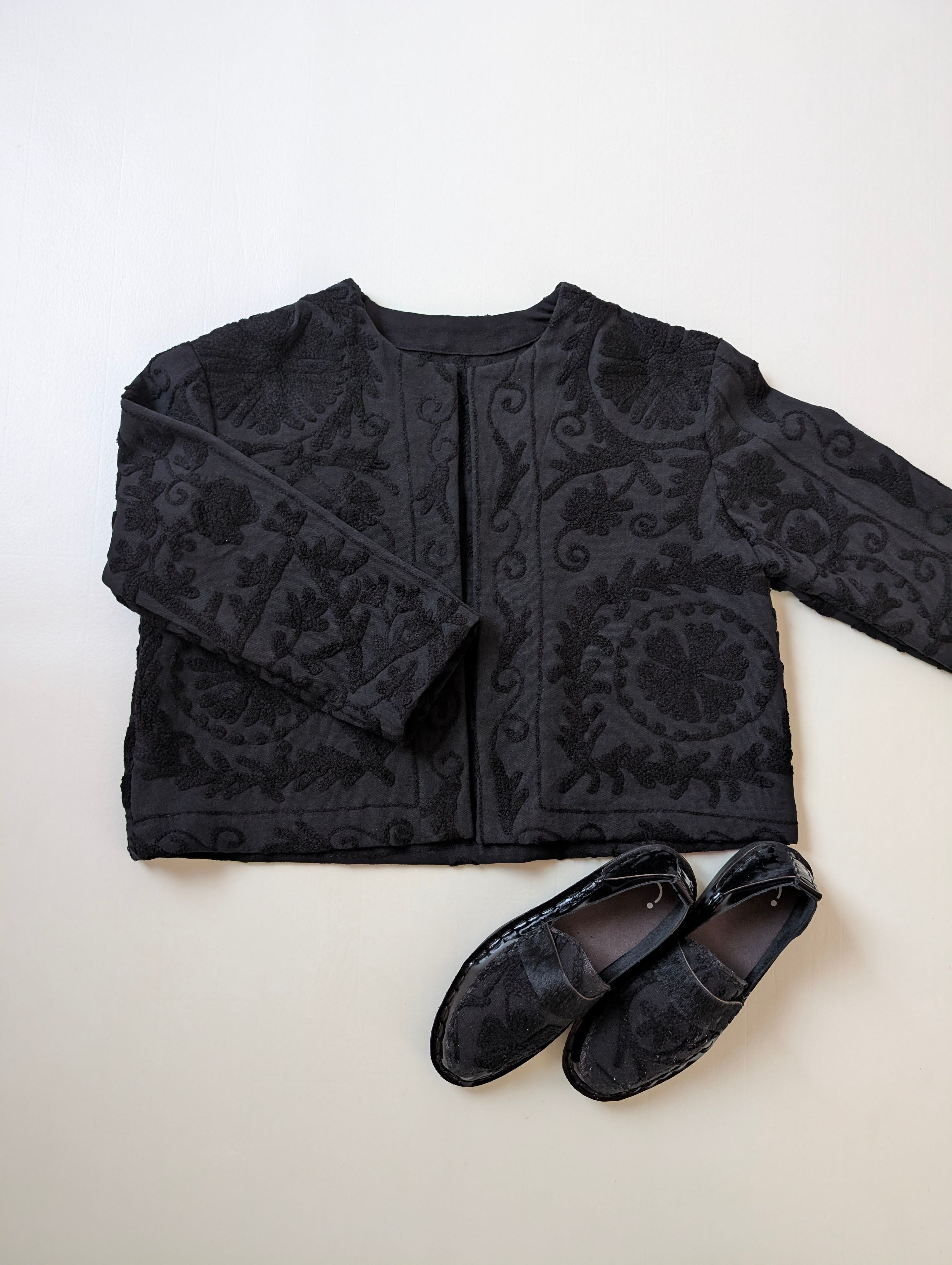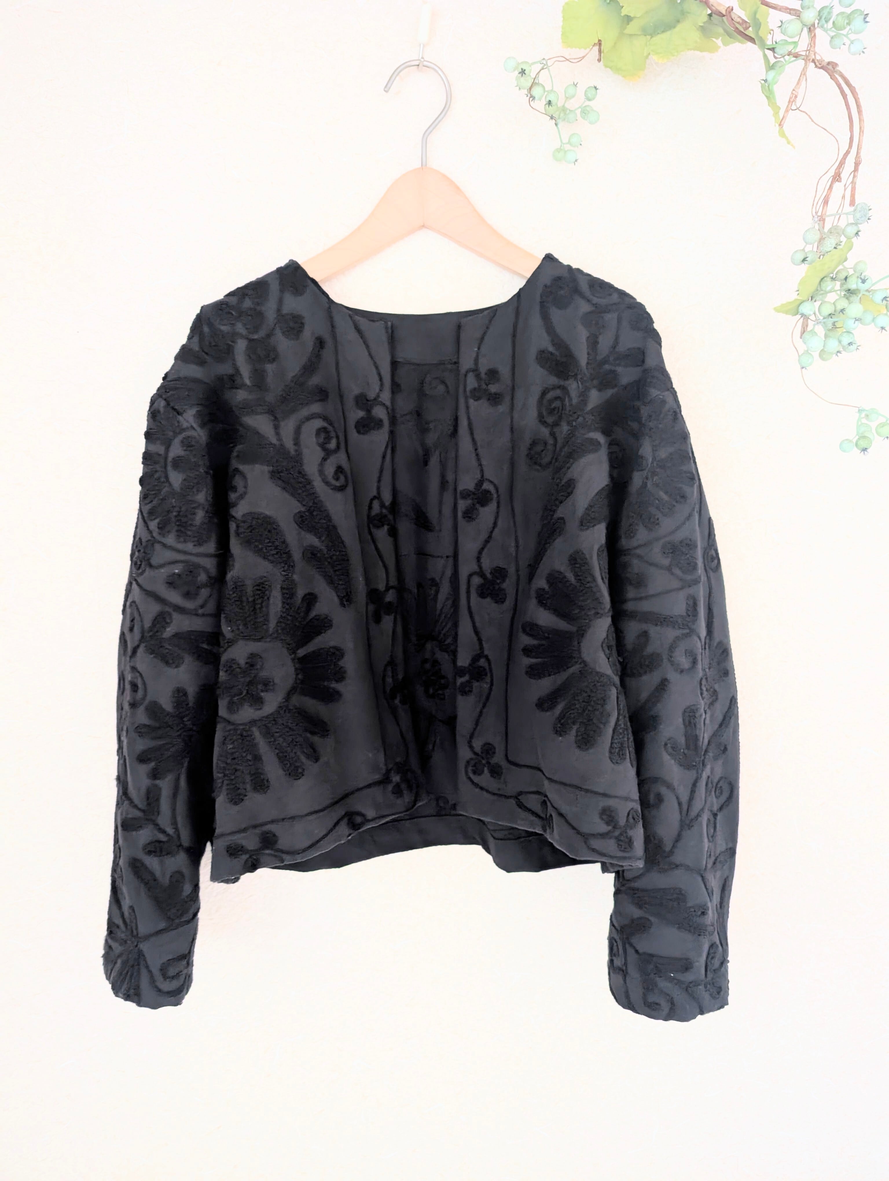 黒い生地に浮かぶ美しくふくよかな刺繍が、