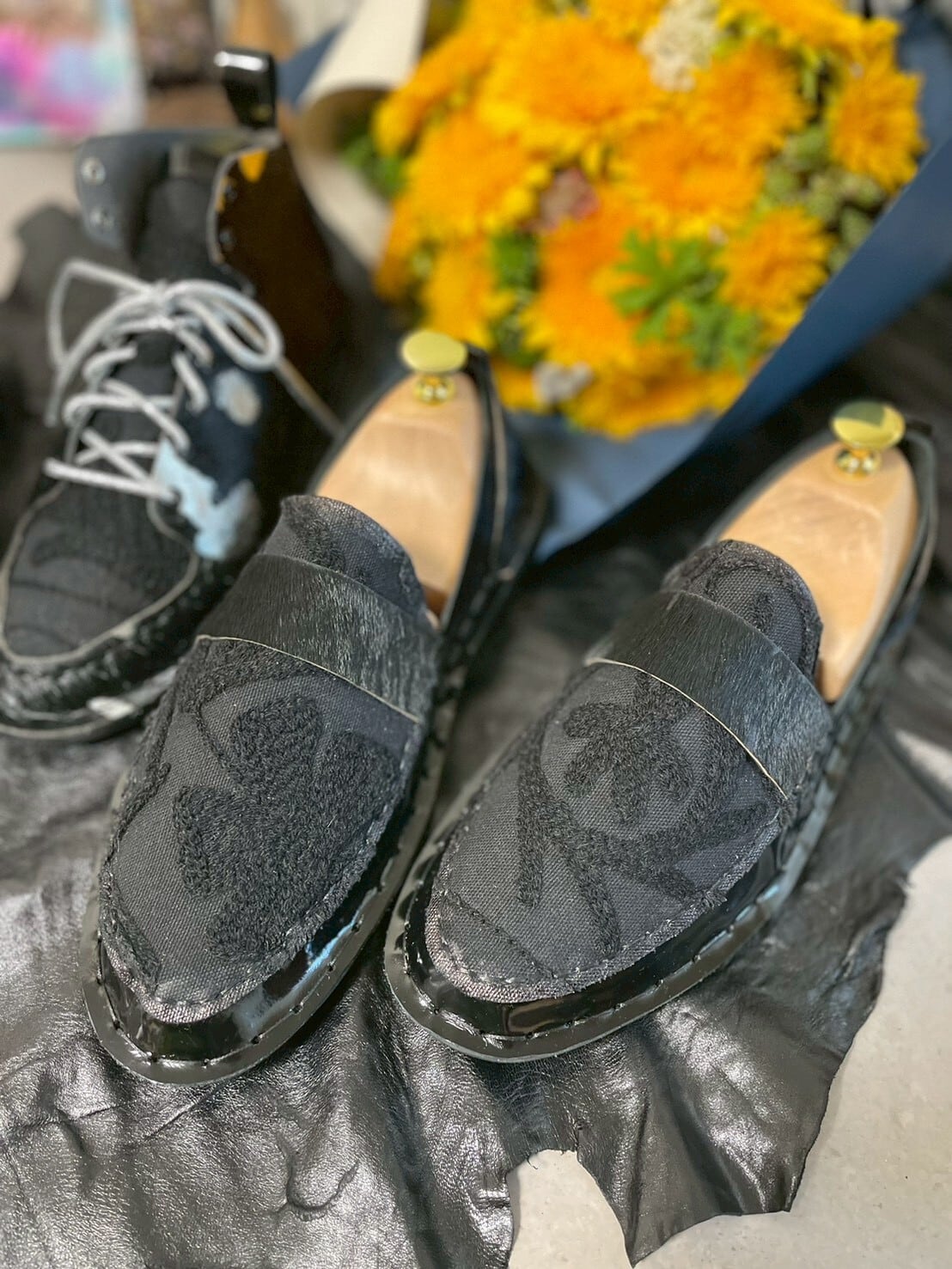 漆黒スザニの刺繍がほかにはないシューズで