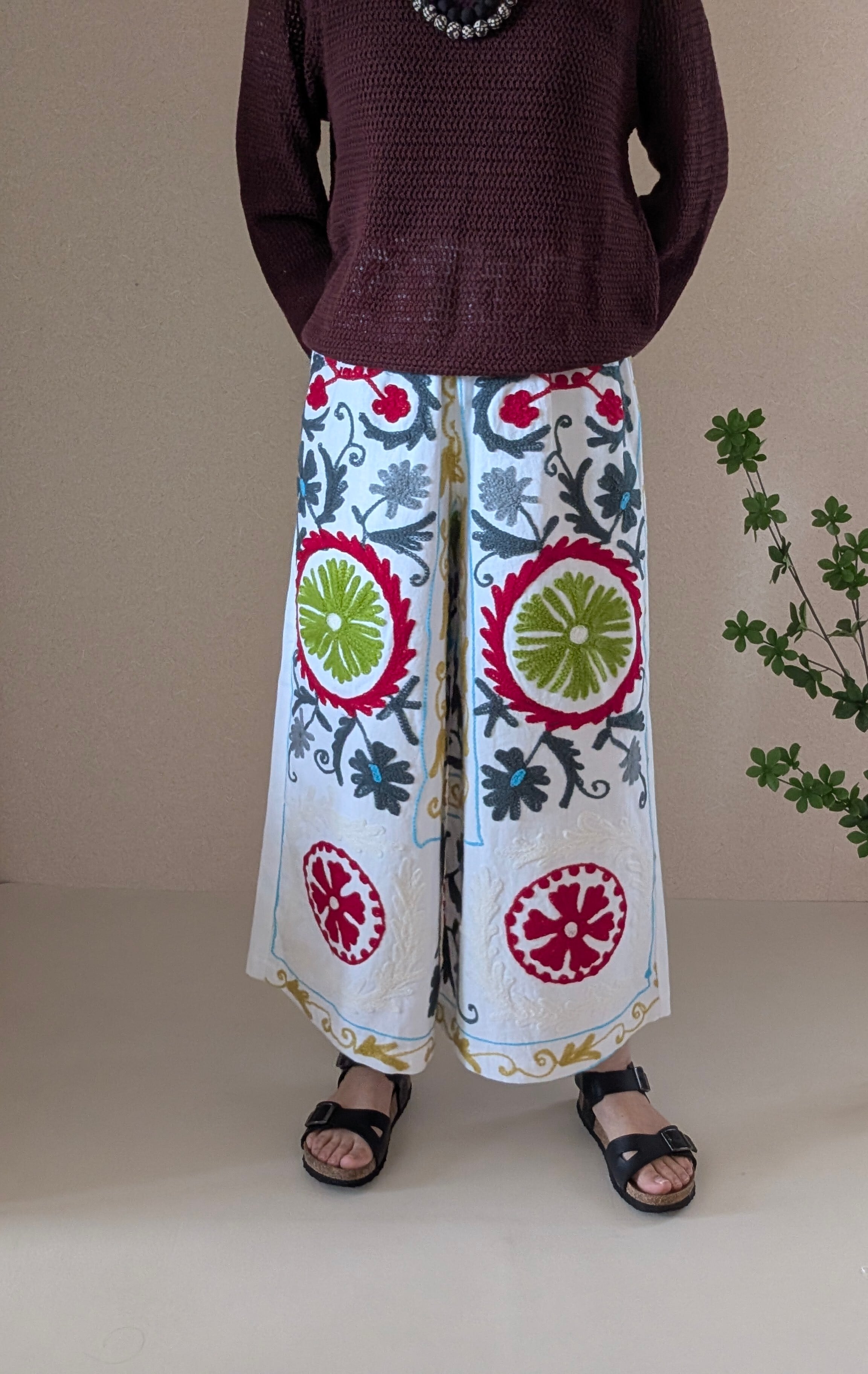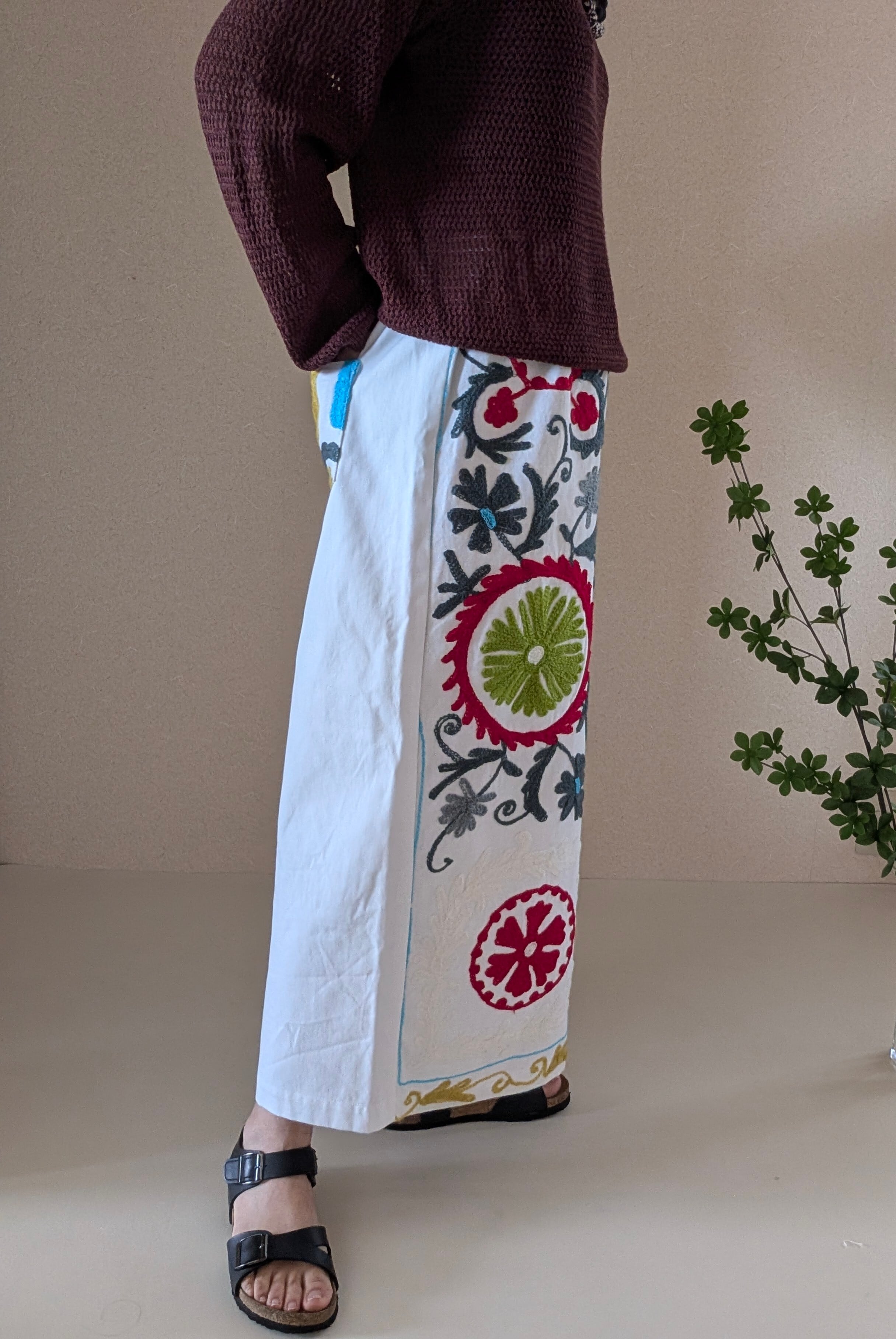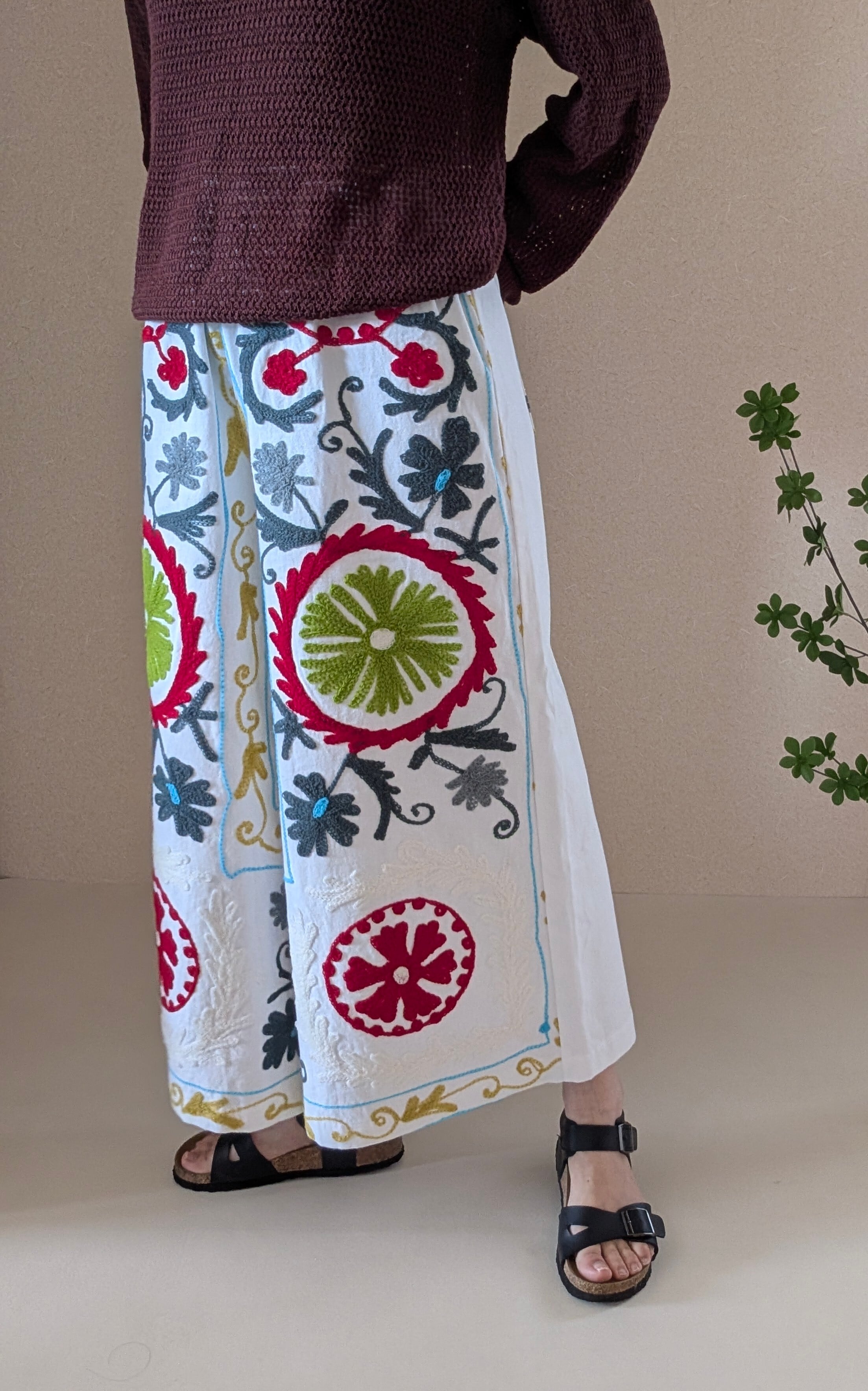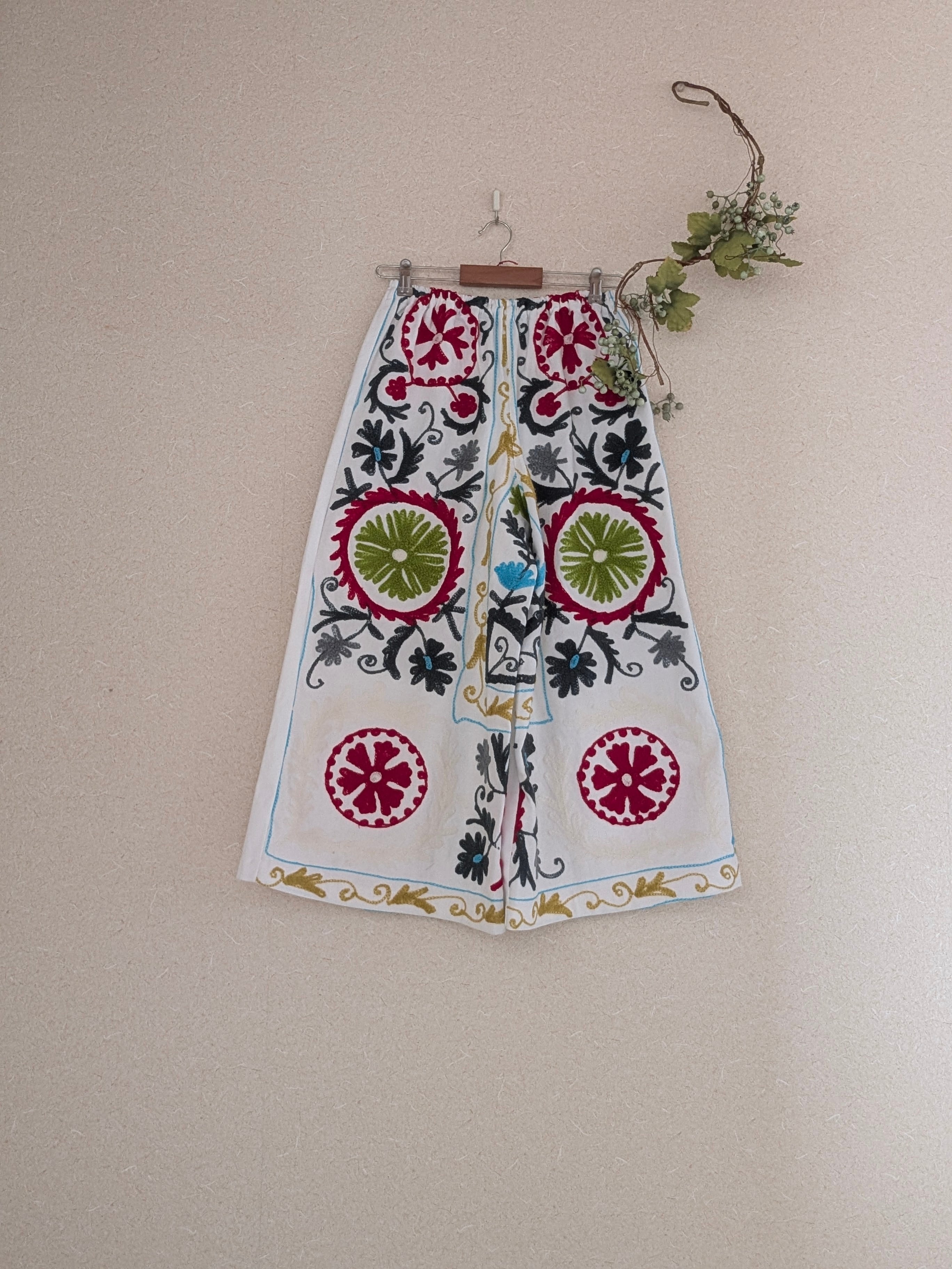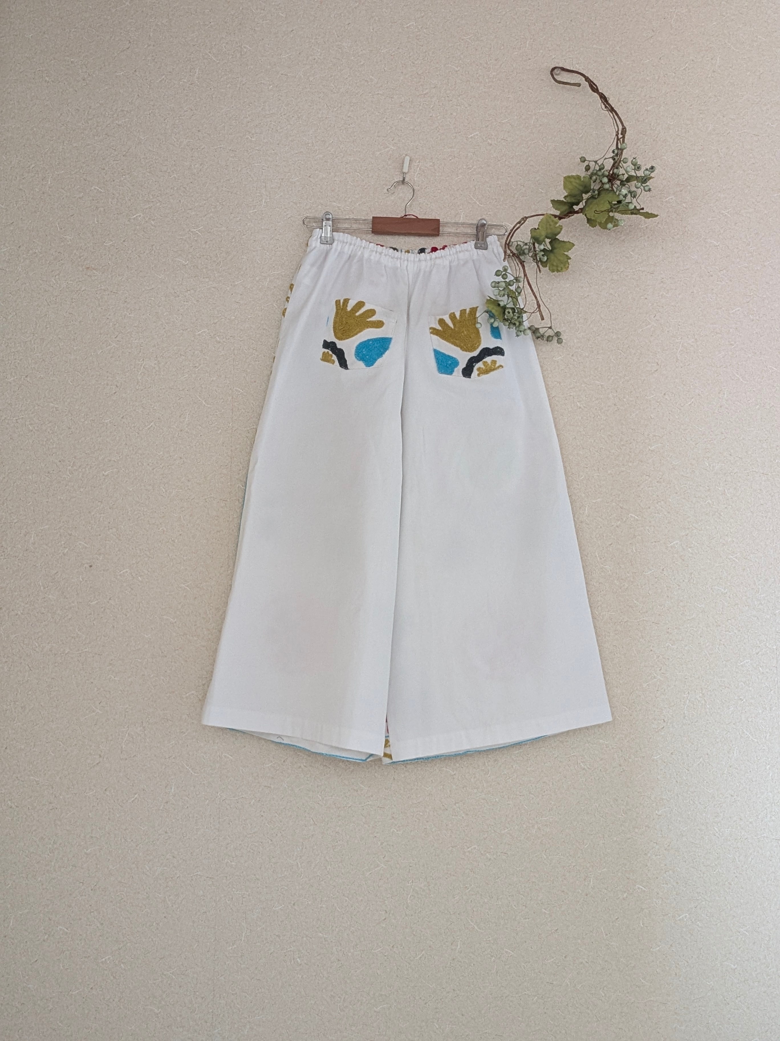 後ろはホワイトの無地。お尻ポケットにスザニ生地を使用。